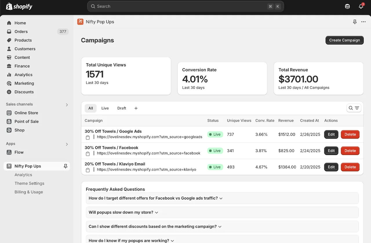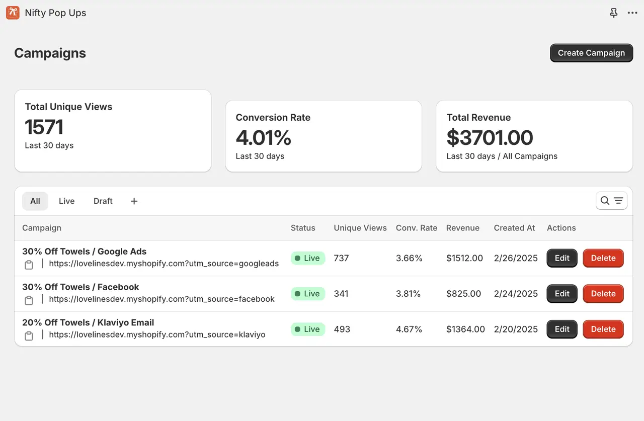 Whether they come from Facebook, Google, or email campaigns, display targeted pop-ups with unique discount codes for each channel